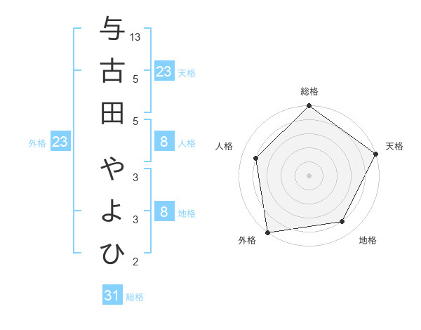 与古田 やよひさんを姓名の画数から五運を鑑定