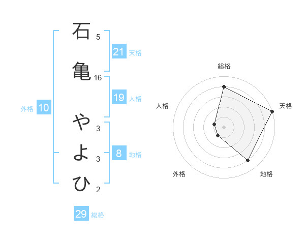石亀 やよひさんを姓名の画数から五運を鑑定