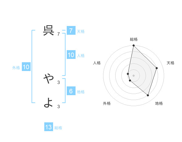 呉 やよさんの総格は13画の5点!
