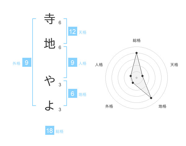 寺地 やよさんの総格は18画の4点!