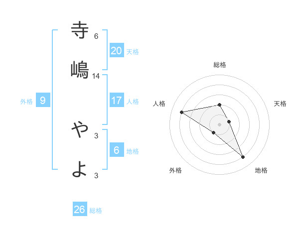 寺嶋 やよさんを姓名の画数から五運を鑑定