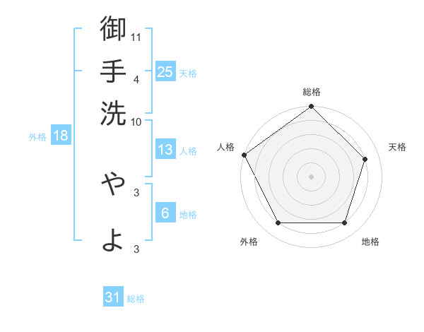 御手洗 やよさんの総格は31画の5点!