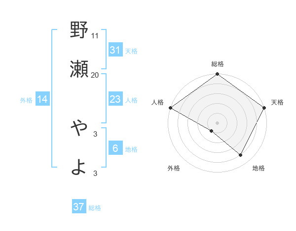 野瀬 やよさんの天格は31画の5点!