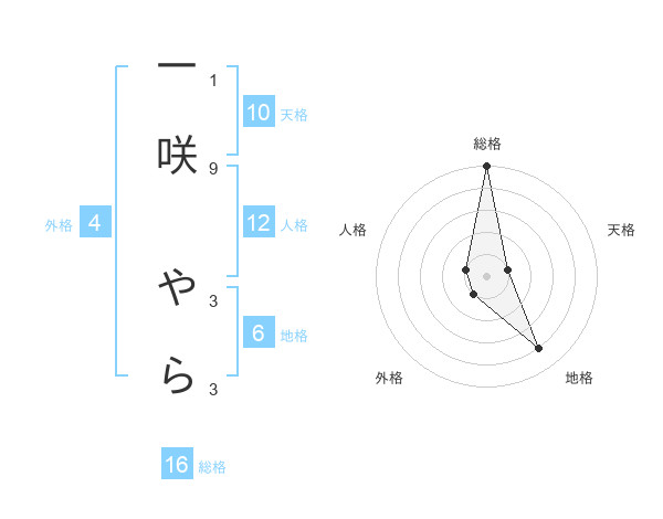 一咲 やらさんの総格は16画の5点!