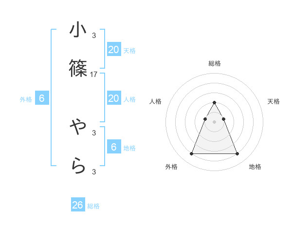 小篠 やらさんの総格は26画の2点!