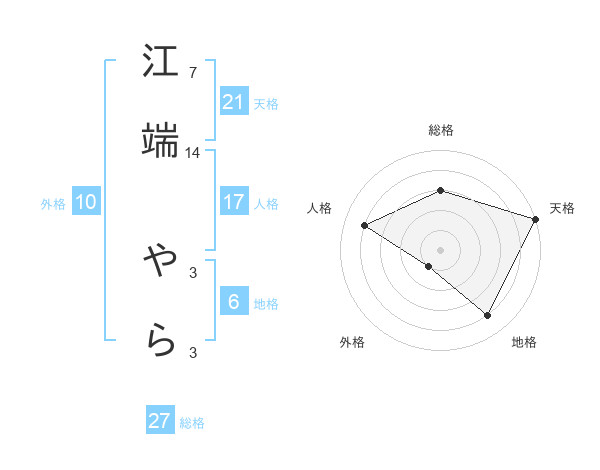 江端 やらさんの総格は27画の3点!