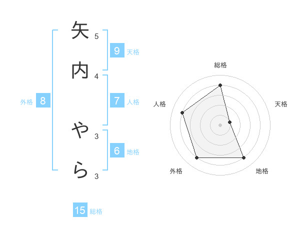 矢内 やらさんの外格は8画の4点!
