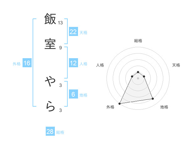 飯室 やらさんの総格は28画の1点!