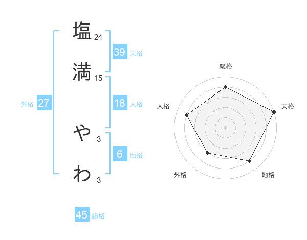 塩満 やわさんの天格は39画の5点!