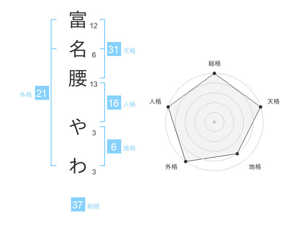 富名腰 やわさんの天格は31画の5点!