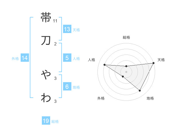 帯刀 やわさんを姓名の画数から五運を鑑定