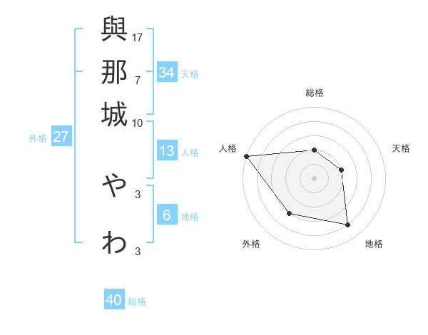 與那城 やわさんの総格は40画の2点!
