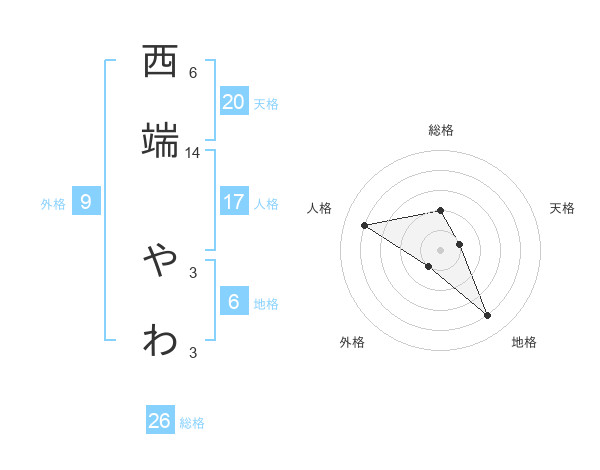 西端 やわさんの総格は26画の2点!