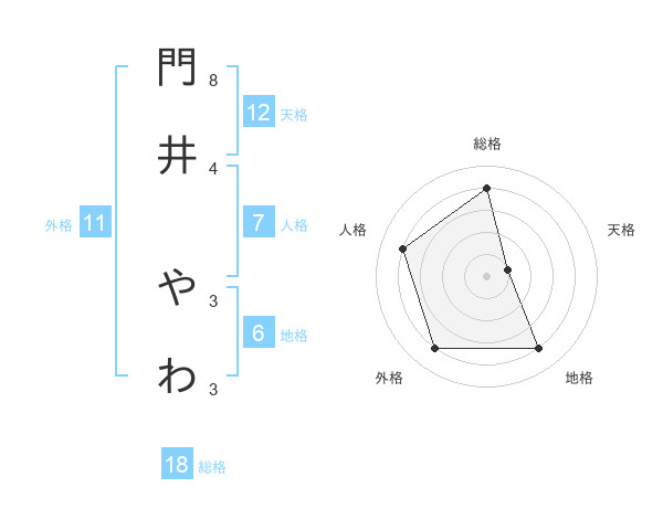 門井 やわさんの総格は18画の4点!