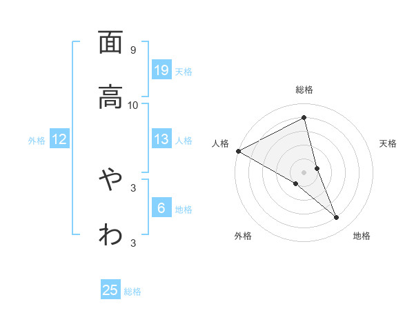 面高 やわさんの総格は25画の4点!