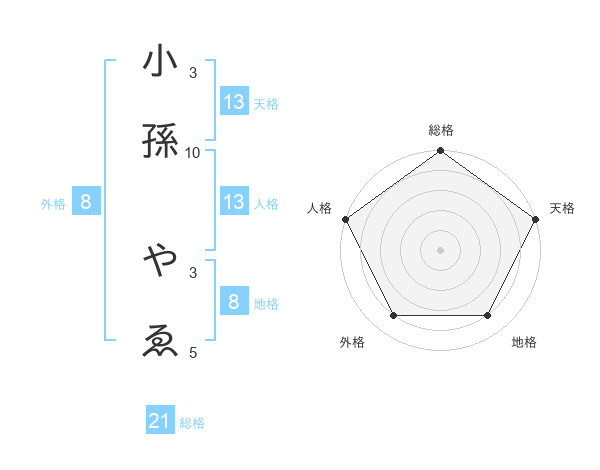 小孫 やゑさんの天格は13画の5点!