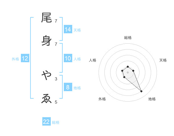 尾身 やゑさんを姓名の画数から五運を鑑定