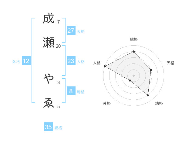 成瀬 やゑさんの総格は35画の4点!