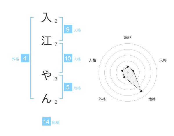 入江 やんさんの総格は14画の1点!