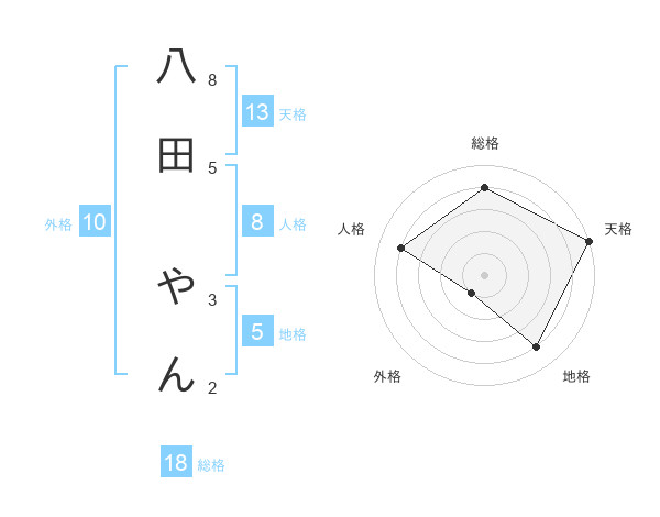 八田 やんさんの天格は13画の5点!
