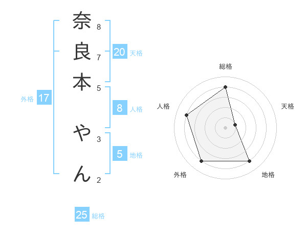 奈良本 やんさんの総格は25画の4点!