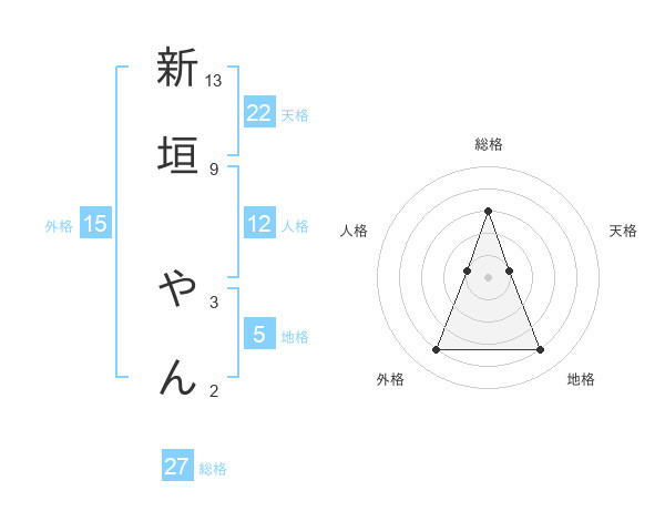 新垣 やんさんの外格は15画の4点!
