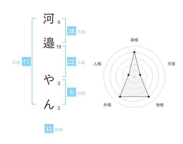 河邉 やんさんの総格は33画の4点!