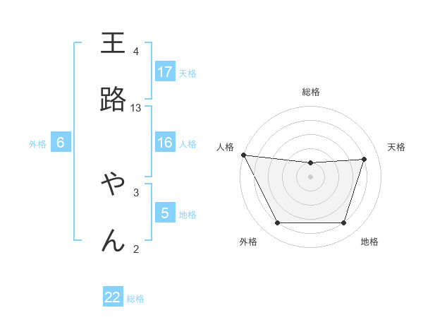 王路 やんさんの天格は17画の4点!