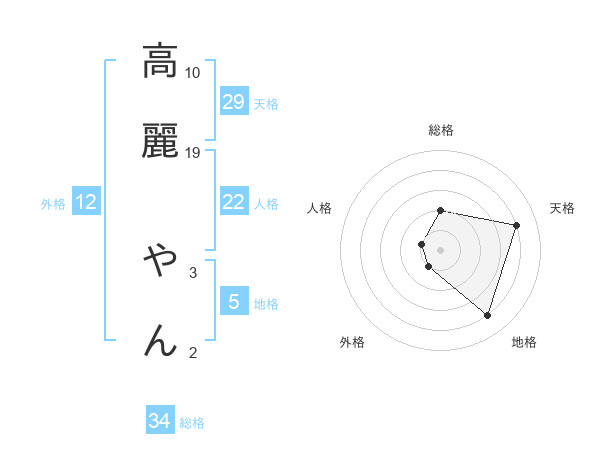 高麗 やんさんの総格は34画の2点!