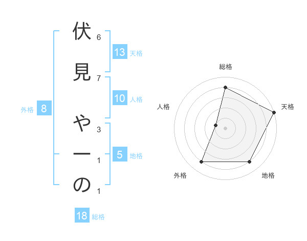 伏見 やーのさんの天格は13画の5点!