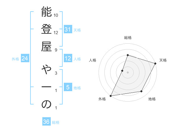 能登屋 やーのさんを姓名の画数から五運を鑑定