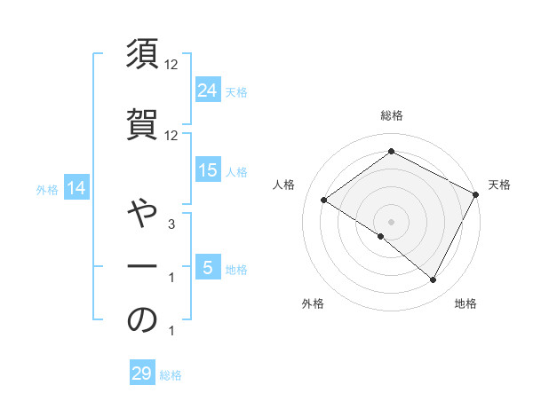 須賀 やーのさんを姓名の画数から五運を鑑定
