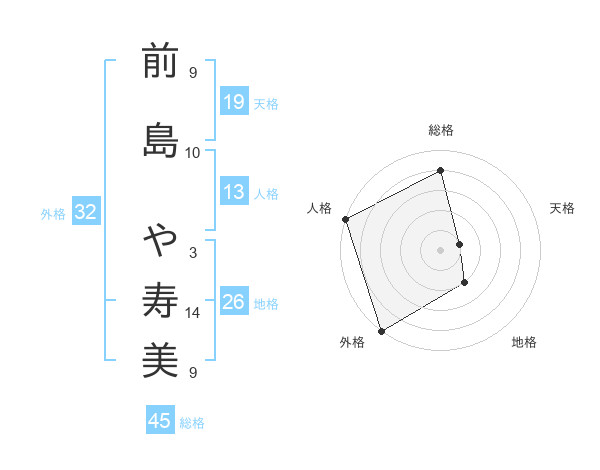 前島 や寿美さんを姓名の画数から五運を鑑定