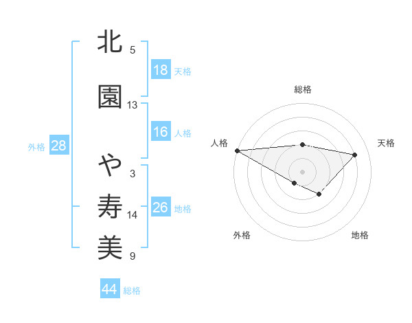 北園 や寿美さんを姓名の画数から五運を鑑定