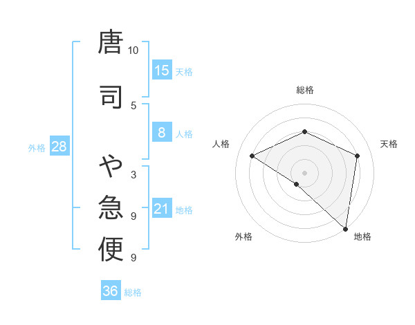 唐司 や急便さんを姓名の画数から五運を鑑定