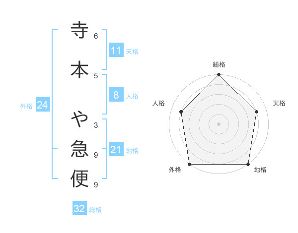寺本 や急便さんを姓名の画数から五運を鑑定