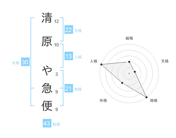 清原 や急便さんの総格は43画の2点!