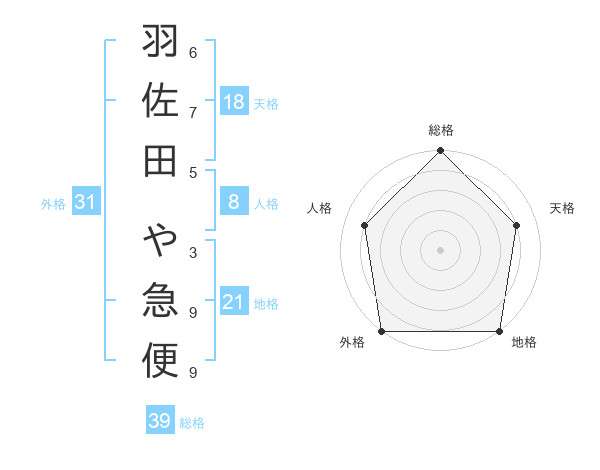 羽佐田 や急便さんを姓名の画数から五運を鑑定