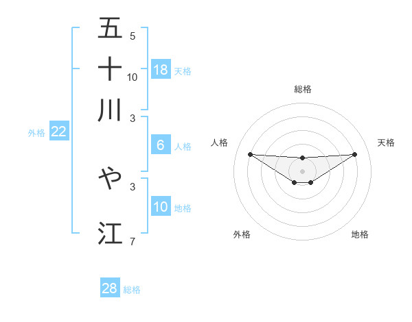 五十川 や江さんの総格は28画の1点!