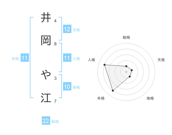 井岡 や江さんの外格は11画の4点!
