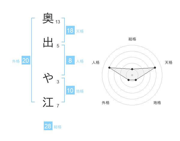 奥出 や江さんの総格は28画の1点!