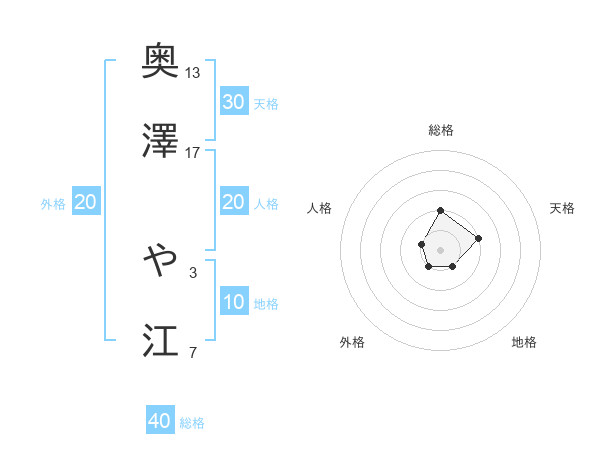 奥澤 や江さんの総格は40画の2点!