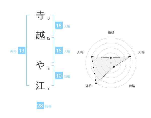 寺越 や江さんの総格は28画の1点!