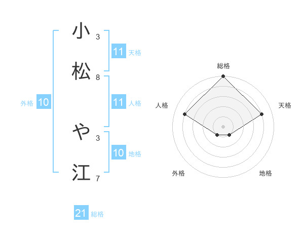 小松 や江さんの総格は21画の5点!