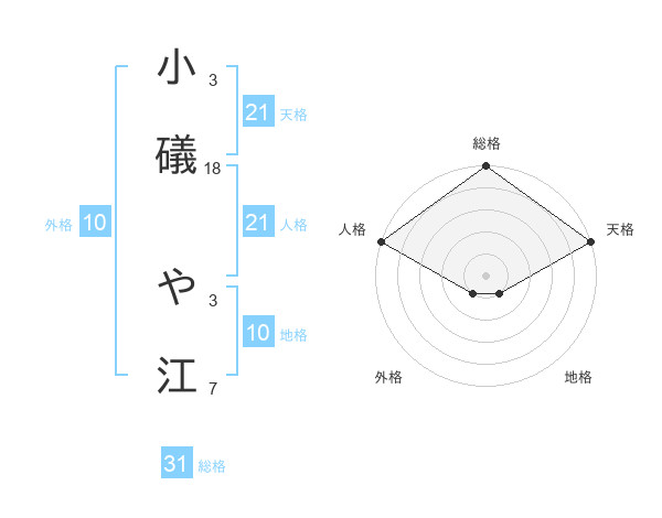 小礒 や江さんの総格は31画の5点!