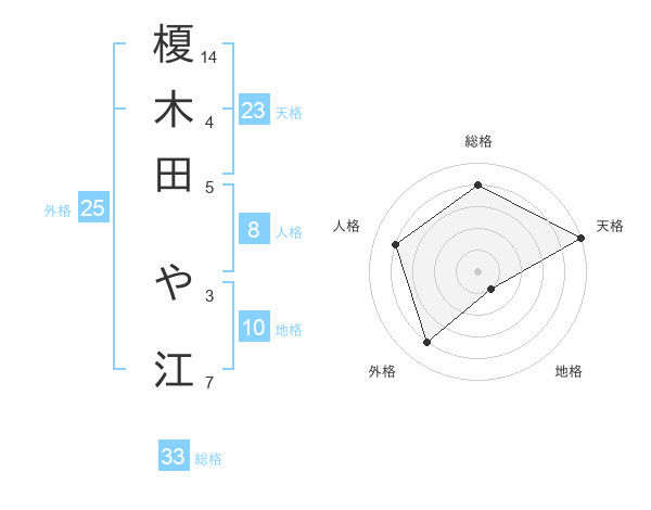 榎木田 や江さんの総格は33画の4点!