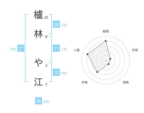 櫨林 や江さんを姓名の画数から五運を鑑定