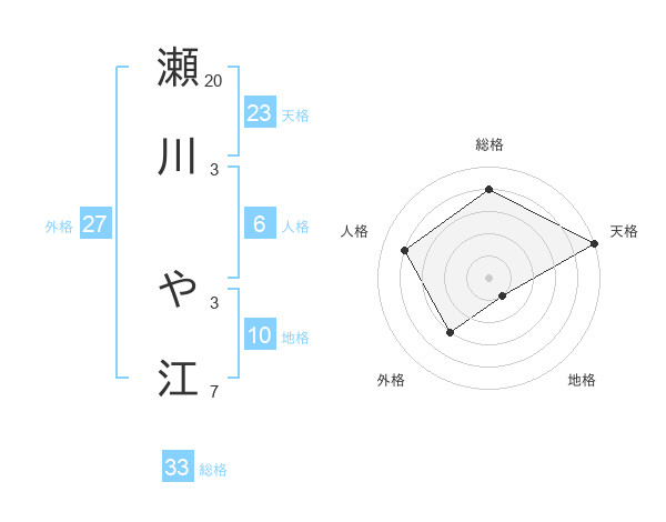 瀬川 や江さんの総格は33画の4点!