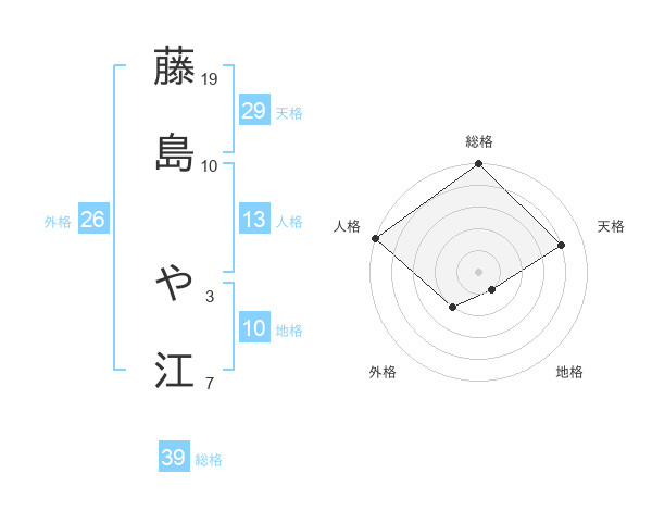 藤島 や江さんの総格は39画の5点