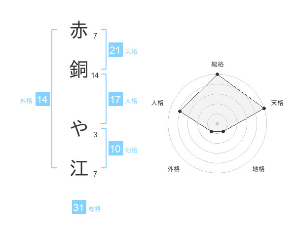 赤銅 や江さんを姓名の画数から五運を鑑定